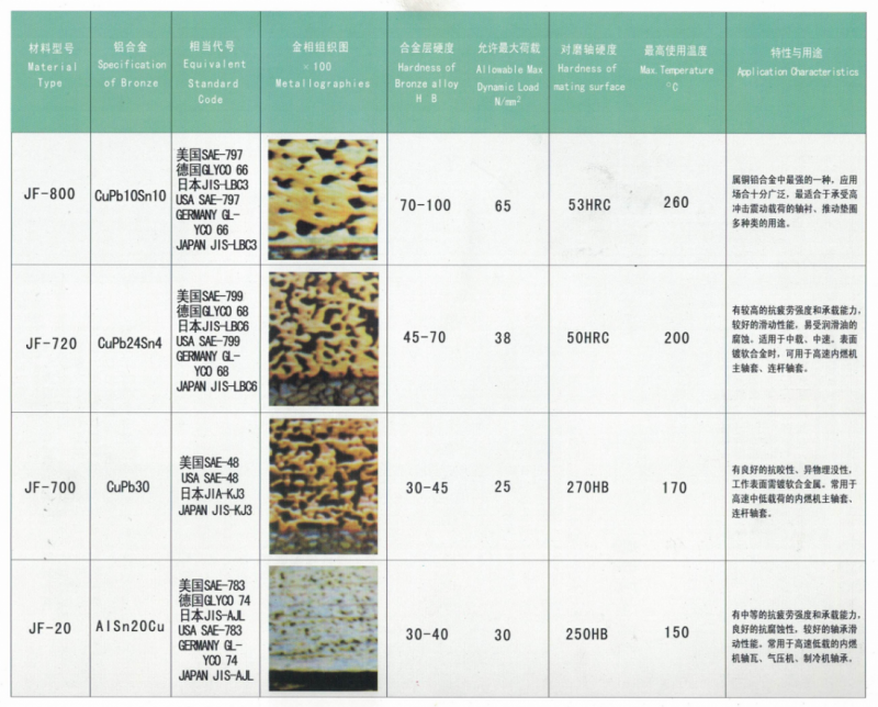 JF-720双金属轴承,是以钢板为基体,表面烧结CuPb24Sn4合金材料的产品。该产品具有较好的抗疲劳强度和承载能力。适用于中速中载,有油润滑的场合表面镀软合金时,可用作高速内燃机轴承、连杆衬套,达到良好的耐磨、抗疲劳效果。