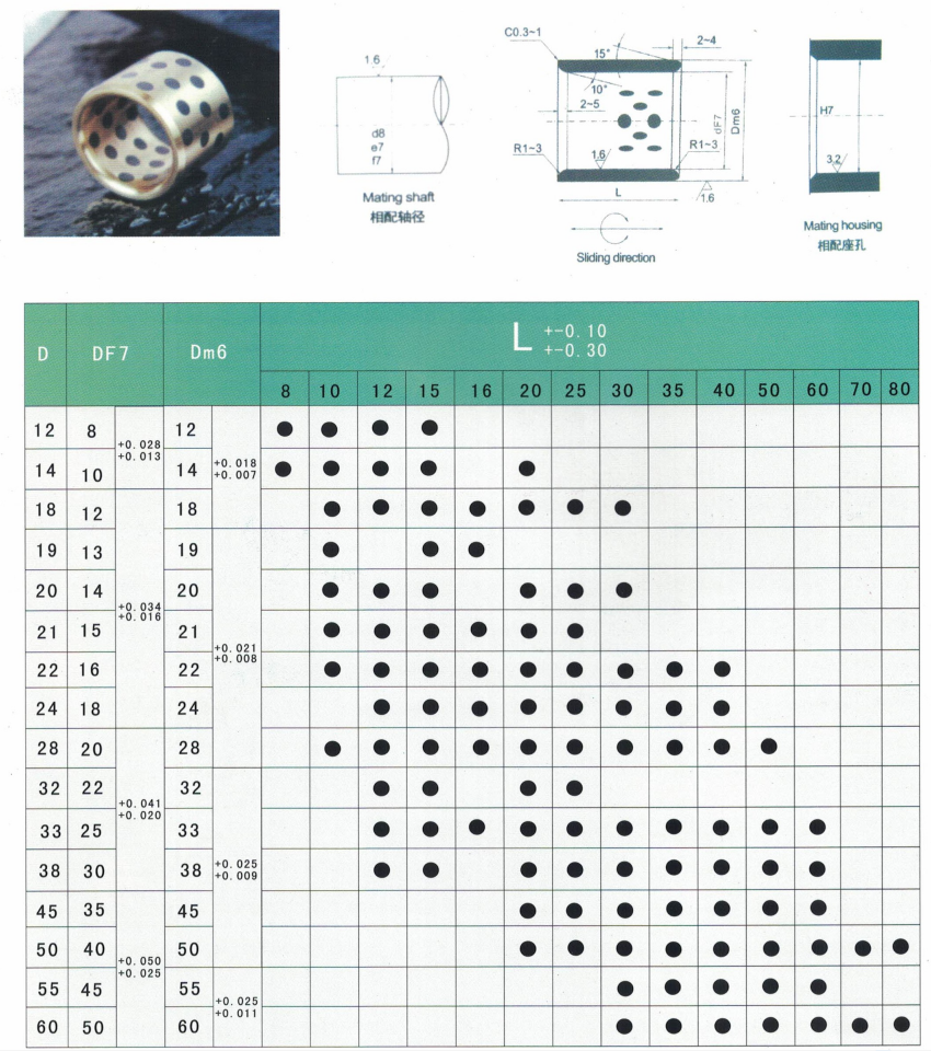 JDB-2青铜镶嵌轴承,是以6-6-3W铜为基体,镶入石墨和 MoS为固体润滑剂的一种固体润滑产品。由于6-6-3靑铜密度比高力黄铜高,所以在高温低载的场合,体现十分耐磨 ,目前已应用于壁炉门、烘炉滚道、橡胶机械、轻工机械 、机床工业等低载、高温、中速的场合。